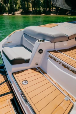 The 2026 Super Air Nautique G25 is equipped with plenty of horsepower, luxurious & spacious interior, reverse seating, convenient walk-through to a massive tail board, heaters and a heated love seat, soft flooring, JL Audio surround sound, telescoping tower, and underwater lighting. Nautique builds the nicest boats in the industry, forging lefts and rights easily tunable from steep and tall to long and mellow.